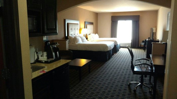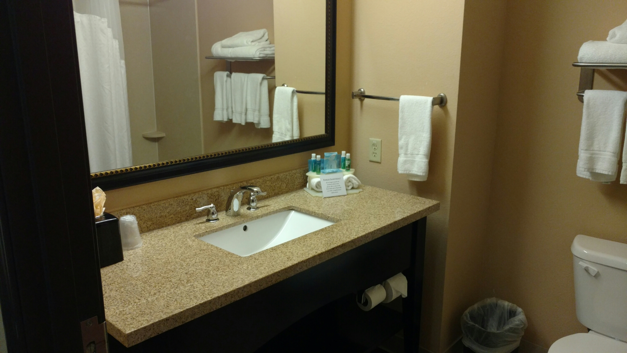 While it served a purpose I was disappointed in some things that might seem picky. The ice machine was broken and the hotel bar had no ice. They only offer liquid soap, no bar soap, minor I know. The windows in the rooms are tiny so it made the room seem like a prison cell. The good part is they did offer a bar which was nice but very limited choices for dinner. Luckily there is a fantastic Italian restaurant nearby and only about two blocks away in this small town area.