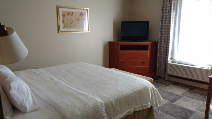 Good clean room. Well located with IHOP, Target, Burger King and taco Bell within a few hundred feet of hotel.