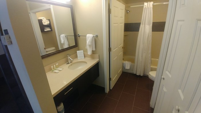 Room 317 was ok and typical setup for a Townplace but I couldn’t help notice worn and stained carpets throughout the entire property. The room was clean but not quite spotless like most Townplace or Marriott properties. The bathroom was mostly clean but a bit dingy in spots.