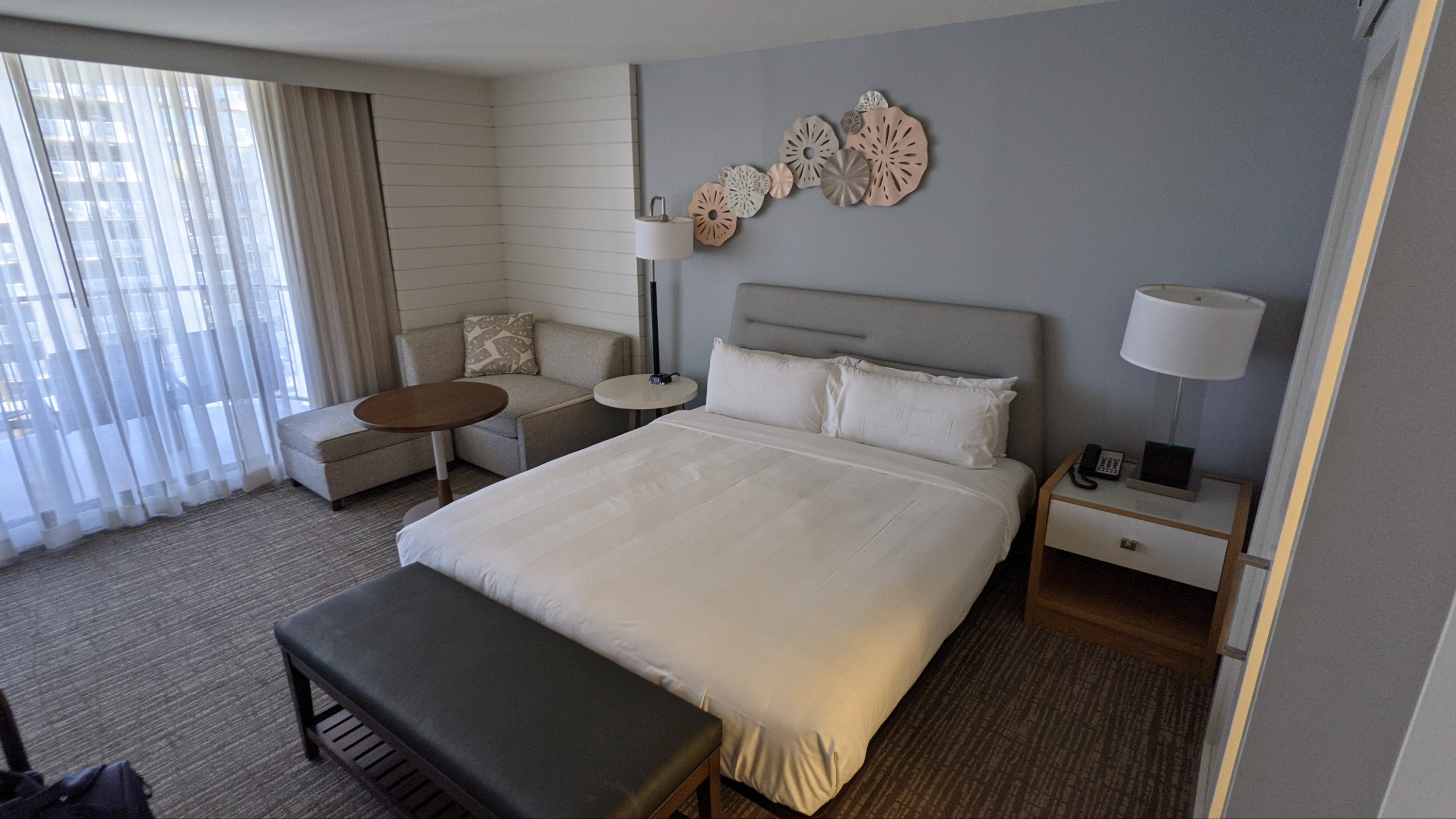 Due to my low Gold status I did end up in a nice beach view room. We really enjoyed the large balcony and view of the nearby hotels.