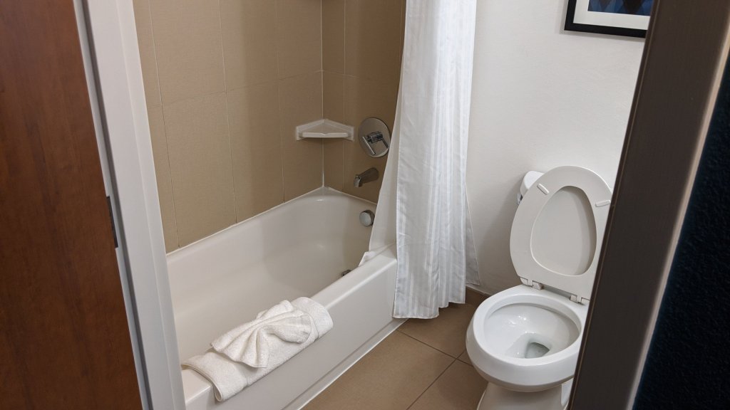 The breakfast was much better than I’ve had at Super 8’s in the past. It offered oatmeal, apples, cold cereal, a few Danish items, toast, and even a waffle machine. No sausage, bacon, or eggs like you might get at the “Fancy” HIX, Fairfield, or Hampton level hotel, but it was fine. I didn’t find any juice or bananas that would make it a bit better for me.