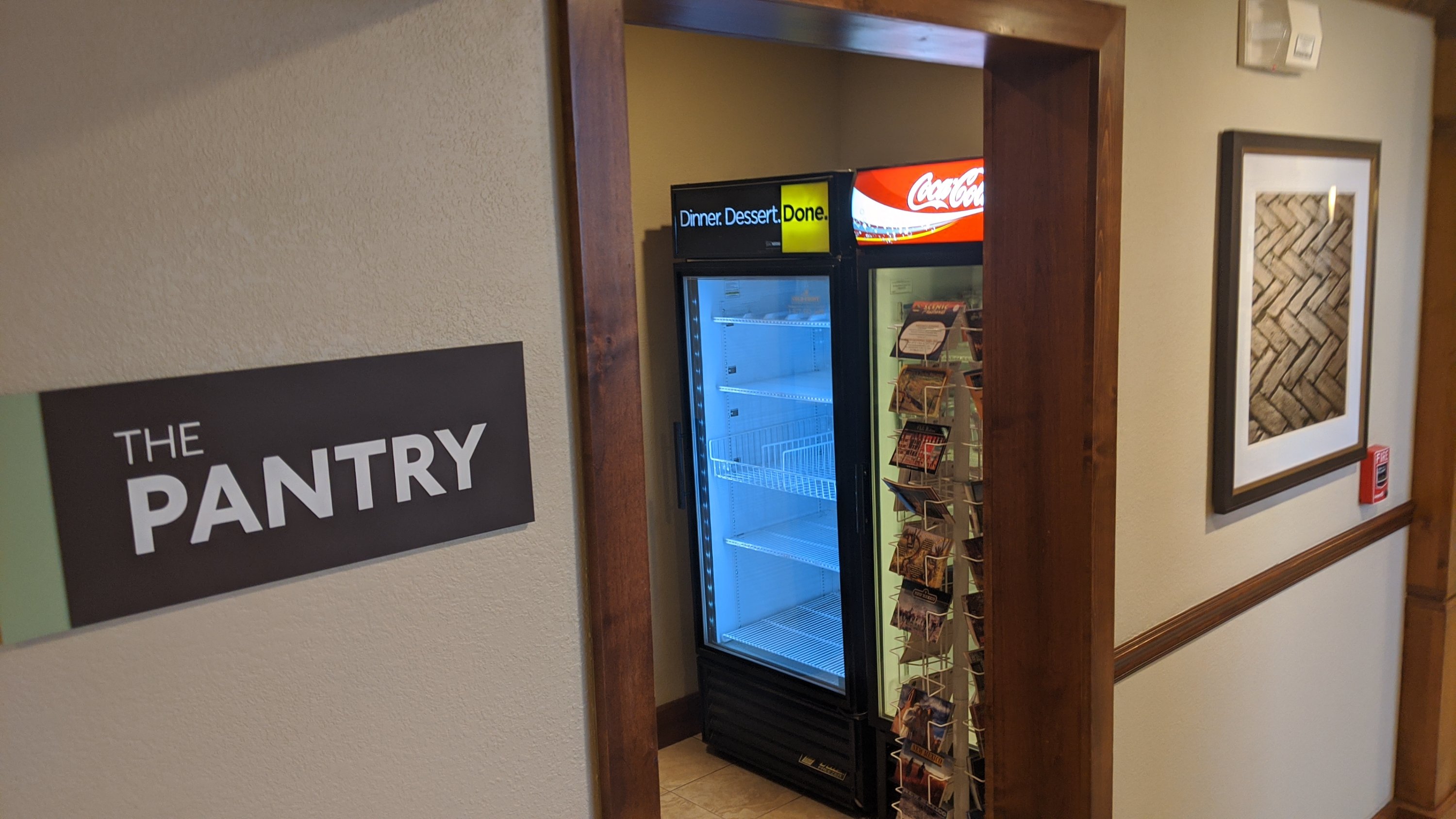 I started to pick up the “Pink Phone,” but soon a desk clerk came out of the private “office” area / Living quarters to check me in. He was very nice and asked about my trip. I was exhausted after a VERY long day and was thankful to have my keys so I could head to my room. I’m always disappointed when a hotel starts breakfast at 7am, as he informed me, but he said coffee would be available 24/7, so I would survive, as I had to get up at 4am the next morning.