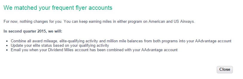 Now you can link your AA American Advantage account to your US Airways Dividend Miles account.